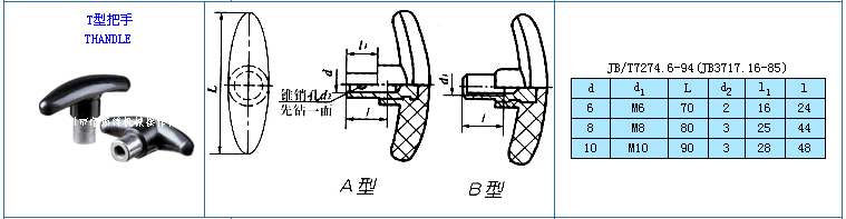 名稱:T形把手 材料:酚醛模塑料(膠木、電木) 外觀:光亮,外形美觀,自然 標準:JB/T7274.6-94