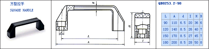 名稱:方形拉手 材料:工程塑料 外觀:亞光,外形美觀,自然 標(biāo)準(zhǔn):QB82853.2-98
